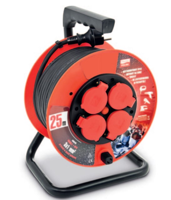 Przedłużacz bębnowy warsztatowy PROFESSIONAL LINE, IP 44, 4x2p+Z, 16A, 3680W, przewód.3x1,5 mm, H05RR-F, czarny, Długość przewodu 30m