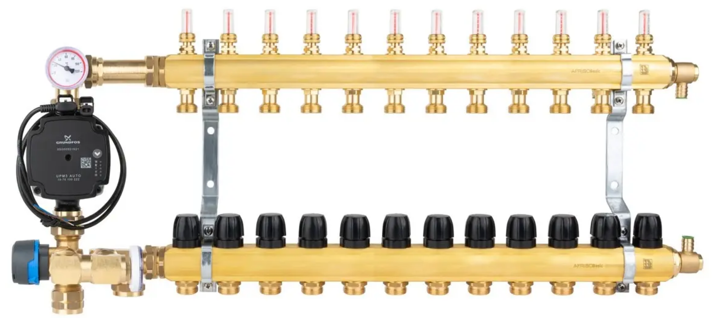 Afriso, Moduł mieszający BRU 551 do ogrzewania podłogowego z zaworem ARV 362 ProClick, pompa obiegowa Grundfos UPM3 Auto,