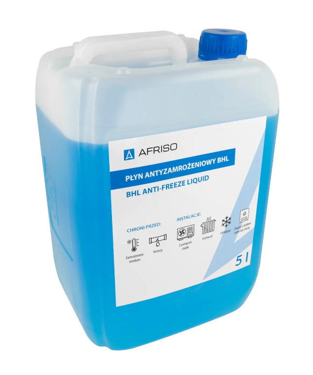 AFRISO, Płyn antyzamrożeniowy BHL do pomp ciepła i instalacji grzewczych i chłodzących, 5 L, stosowane stężenie min. 25%, pH w temp 20°C 7,5 - 8,0