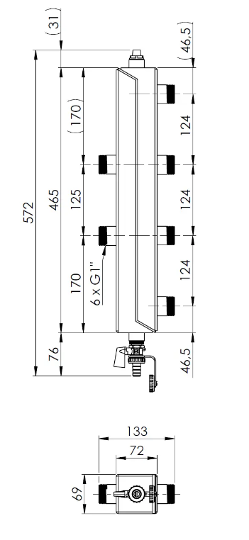 Afriso, Rozdzielacz BBM 870 na dwa obiegi, do 35 kW, maksymalne ciśnienie 6 bar, maksymalna temperatura 90°C, przepływ max 2 m³/h