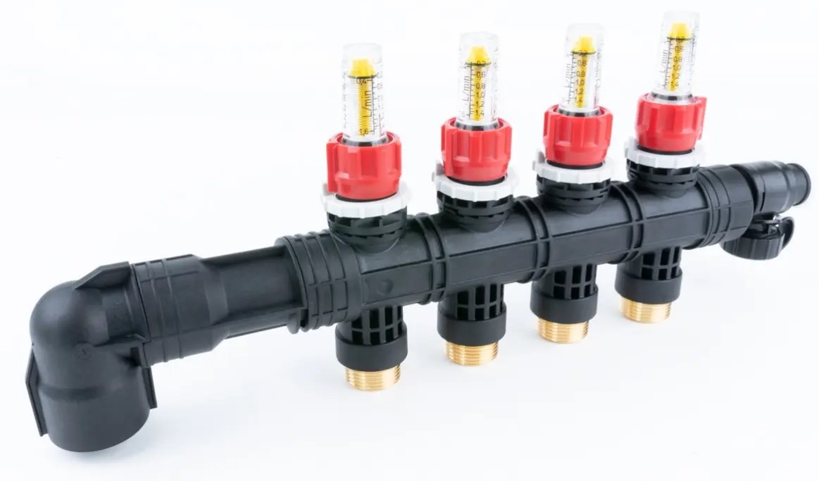 Stosowany w instalacjach płaszczyznowych grzewczych lub chłodzących, montowany bezpośrednio do rodzielacza ProCalida EF1 K, umożliwia podłączenie rozdzielacza do instalacji od dołu.