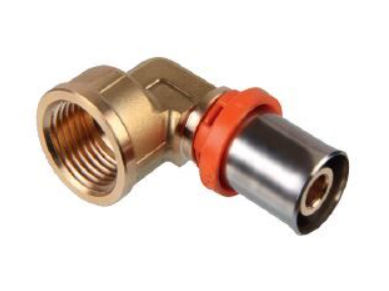 Kolanko zaprasowywane zacisk/gwint, 20x1/2", GW, tulejka z tworzywa i pierścień ze stali INOX.