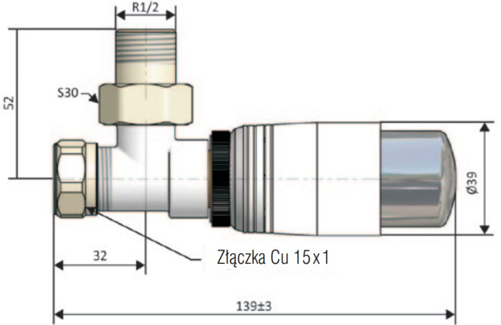 Alterna IRIS Zestaw dekoracyjny grzejnikowy, kątowy, termostatyczny ze złączką Cu M22x1,5x15mm Kod ALTN-965022