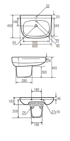 Alterna VIVO Umywalka wisząca 1-otworowa 590x445x170mm + śruby montażowe Kod ALTN-124477