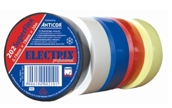 Anticor Electrix 202 Superflex Taśma elektroizolacyjna PCW, niebieska 10szt x 0,19mmx19mx20m Kod PE-2022003-0019020