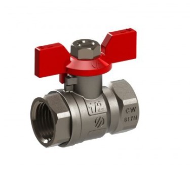 Zawór kulowy do wody, 1", gwint wewnętrzny, uchwyt motylek, materiał: nikiel, PN 30
