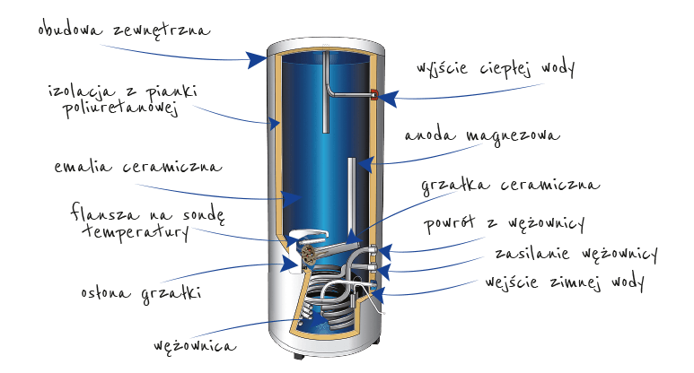 CONFORTO 150L Wymiennik c.w.u. z wężownicą, pojemność 150 litrów, model stojący, powierzchnia wymiennika 0,66m2, posiada dyrektywę ErP