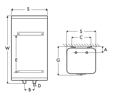 CUBE 150L Pojemnościowy ogrzewacz wody, wersja wisząca, pojemność 150l, moc grzałki 1500W, 5 lat gwarancji.