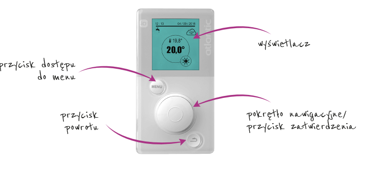 NAVILINK A78 Termostat pokojowy, bezprzewodowy, naścienny, to zaawansowany programator z przeniesieniem wszystkich funkcji automatyki znajdującej się w module wewnętrznym; Może być przypisany do jednego obiegu grzewczego; Współpracujący z pompami typu powietrze-woda Atlantic, współpracuje z aplikacją COZYTOUCH