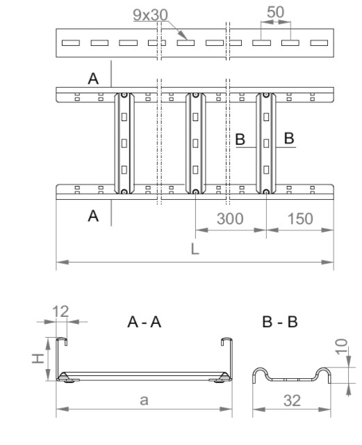 Prowadzenie trasy kablowej, stal cynkowana metodą Sendzimira PN-EN 10346:2015-09, Długość 3m