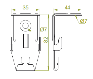 Wieszak korytka siatkowego WKS/WKSO60, stal ocynkowana galwanicznie, E90, 35x44x82 mm
