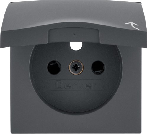 Berker, seria B.Kwadrat/B.7, Płytka czołowa z pokrywą, przysłonami styków, do gniazda z uziemieniem, w kolorze antracytowym.