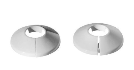 Rozeta pojedyncza biała fi 22, do osłony rur PeX, miedź, PP. Posiada nacięcie z klipsem, 2 sztuki.