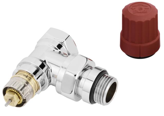 Danfoss RA-NCX Termostatyczny zawór DN 15 kątowy Zawór z nastawą wstępną, kolor chrom