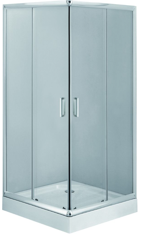 Funkia Kabina prysznicowa dwudrzwiowa rozsuwana, kwadratowa 80cm, bezpieczne szkło hartowane 5mm - transparentne, wykończenie chrom, ciche zamknięcie, podwójne rolki łożyskowane, profil wyrównujący U