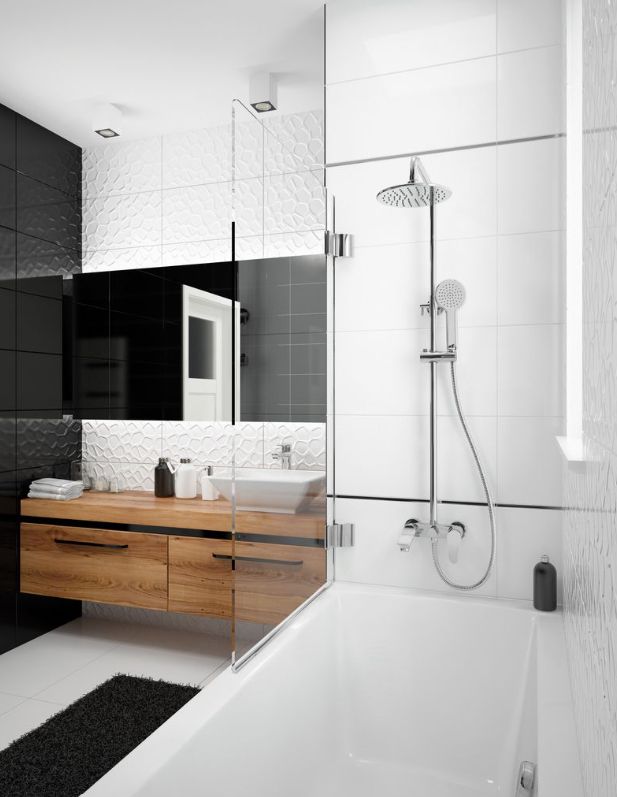 JASKIER Deszczownia z baterią wannową, kolor chrom, typ baterii: mieszaczowa, drążek o regulowanej wysokości: 1025 - 1450 mm, system anti-calc