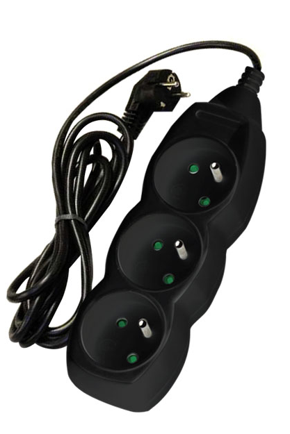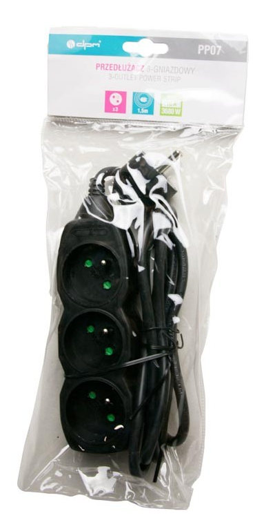 DPM Przedłużacz 3 gniazda, z wyłącznikiem, z uziemieniem, długość przewodu 1,5 m, 10A, kolor czarny