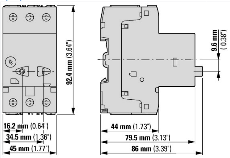 Wyłącznik silnikowy PKZM01-20-EA, zakres nastawy prądu: 16-20A, maksymalna moc znamionowa pracy AC-3 400V: 9kW, połączenie śrubowe