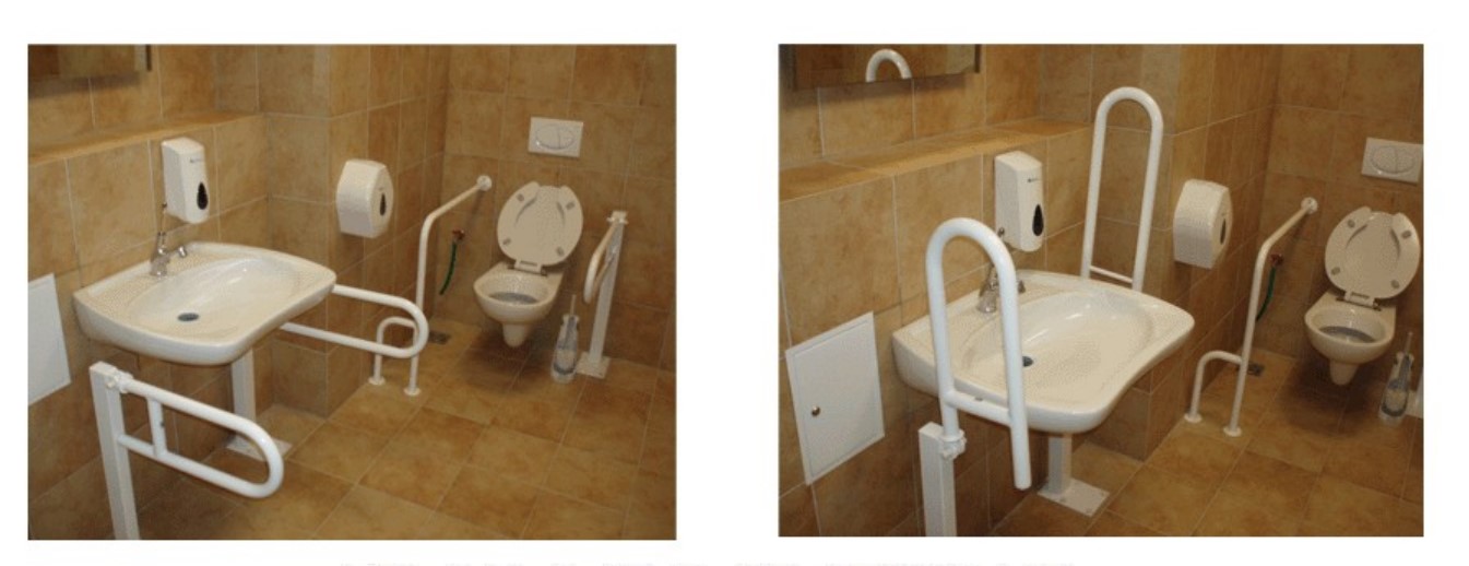 Poręcz, stal malowana proszkowo na kolor biały w komplecie ze śrubami i zaślepkami, RK 21 u – poręcz uchylna „60” ramię podnoszone, nieopadające mechanizm regulacji siły podnoszenia/opuszczania ramienia, Obciążenie maksymalne: 145 kg, Średnica rury: 32 mm