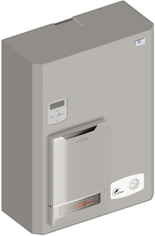 ELTERM Chorąży seri AsC Kocioł elektryczny o mocy 4kW z przepływowym podgrzewaczem wody o mocy 21kW Wyposażony w PV ready oraz wbudowany licznik zużycia energii z PV. Może pracować w układzie otwartym i zamkniętym