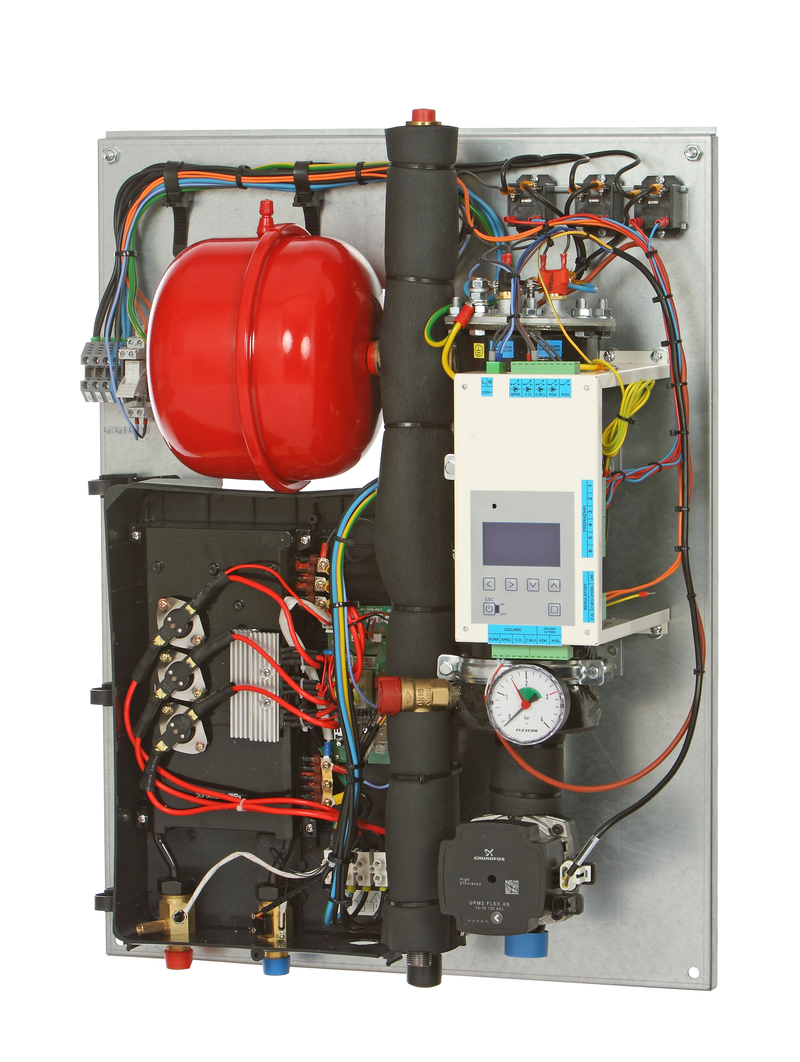 ELTERM Porucznik seri AsC-W 400V Elektryczny kocioł wodny o mocy 12 kW z przepływowym podgrzewaczem wody o mocy 12 kW z serią zaawansowaną LCD. Idealny jako główne lub alternatywne źródło ciepła w układach z PV. Wyposażony w sterowanie pogodowe i programator tygodniowy c.o. Kocioł może pracować w układzie otwartym i zamkniętym.