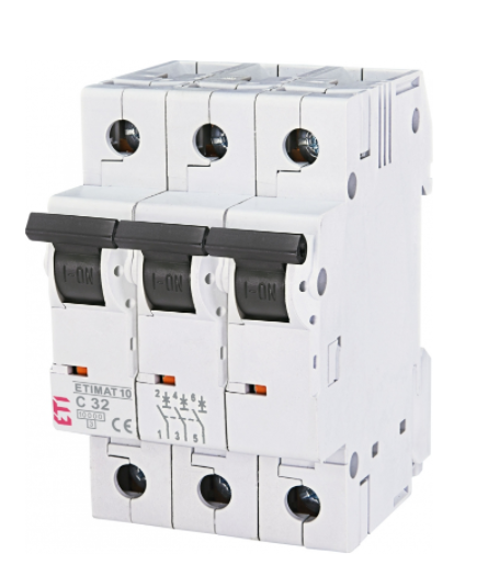 ETIMAT Wyłącznik nadprądowy 3-biegunowy, prąd zwarciowy 10kA, prąd znamionowy 32A, charakterystyka wyzwalania C, rodzaj napięcia AC