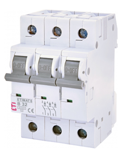ETIMAT 6 Wyłącznik nadprądowy 3-biegunowy, prąd zwarciowy 6kA, prąd znamionowy 32A, charakterystyka wyzwalania B, rodzaj napięcia AC