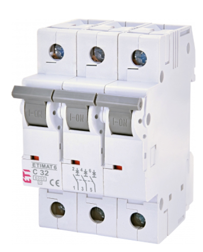 ETIMAT 6 Wyłącznik nadprądowy 3-biegunowy, prąd zwarciowy 6kA, prąd znamionowy 32A, charakterystyka wyzwalania C, rodzaj napięcia AC