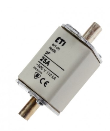 Wkładka topikowa NH00/WT-00 gF 25A/500V, Górny wskaźnik zadziałania, Zwarciowa zdolność wyłączania 110 kA