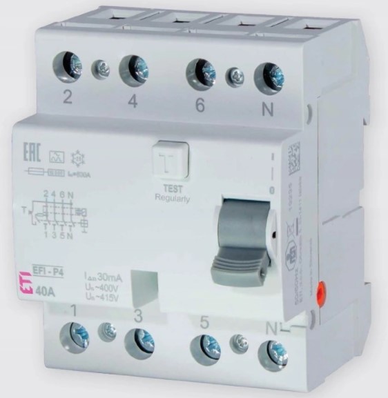ETI, Wyłącznik różnicowoprądowy EFI6-P4 AC 40/0.03, 4-biegunowy KOD: 002061652