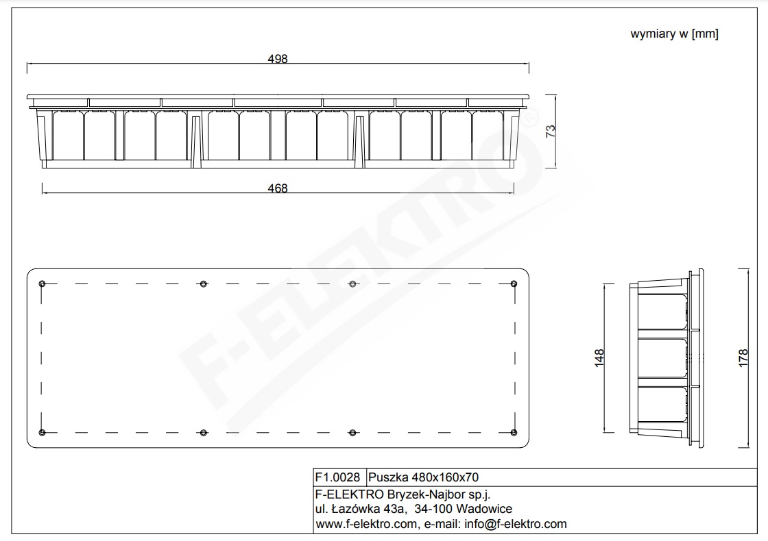 F-ELEKTRO Puszka podtynkowa 480x160x70 KOD F1.0028