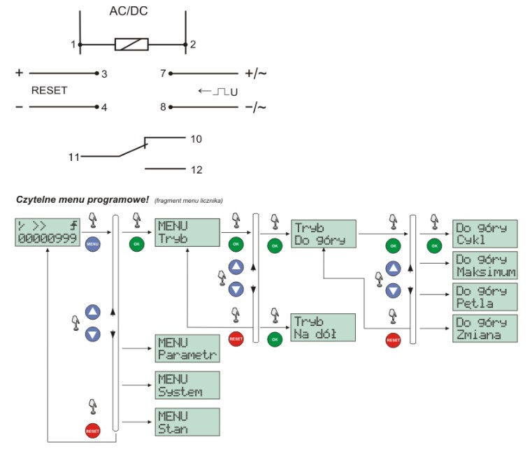 Liczniki impulsów służą do zliczania sygnałów napięciowych AC/DC generowanych przez dodatkowe, zewnętrzne urządzenia w celu określenia liczby wykonanych cykli pracy w układach automatyki, np. do kontroli liczby uderzeń prasy, liczby obrotów urządzenia rotującego, liczby elementów schodzących z taśmy produkcyjnej, itp.