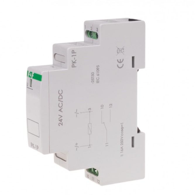 F&F Przekaźnik elektromagnetyczny, 1-modułowy, montaż na szynie, KOD: PK-1P-24V