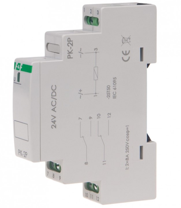 F&F Przekaźnik elektromagnetyczny, 1-modułowy, montaż na szynie, KOD: PK-2P-24V
