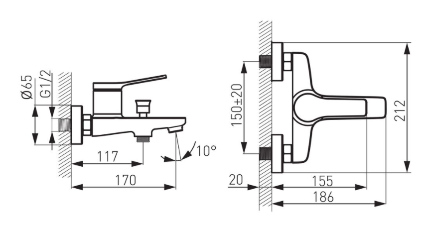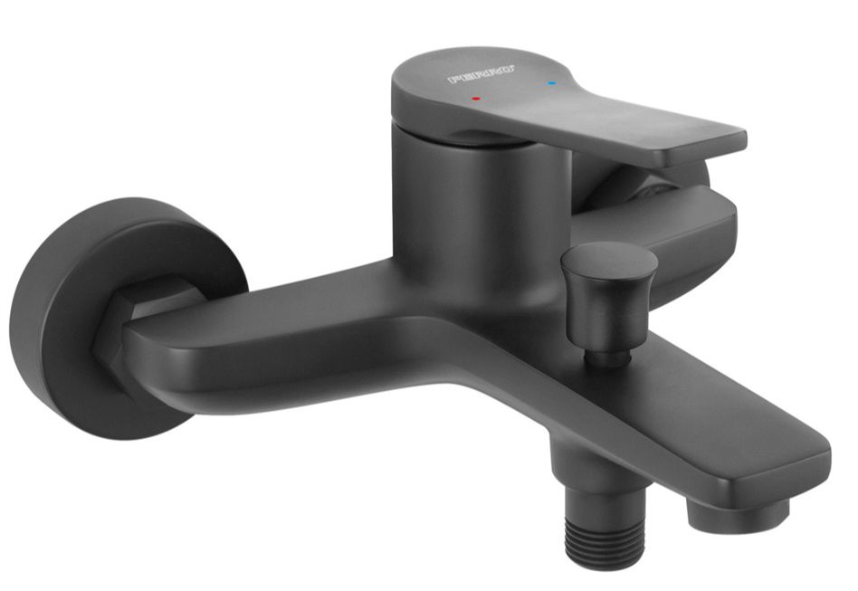 STRATOS BLACK Bateria wannowa, ścienna, bez natrysku, automatyczny przełącznik wanna/natrysk z blokadą, przyłącze mimośrodowe G1/2 rozstaw 150 ± 20 mm, kolor czarny, perlator M24x1