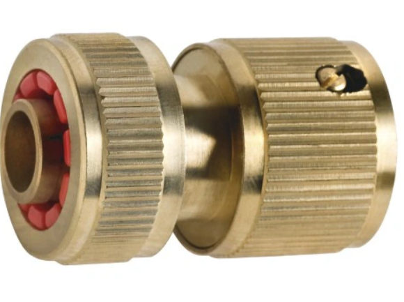 Szybkozłącze mosiężne z zaworem stopowym, 1/2" do węża ogrodowego.