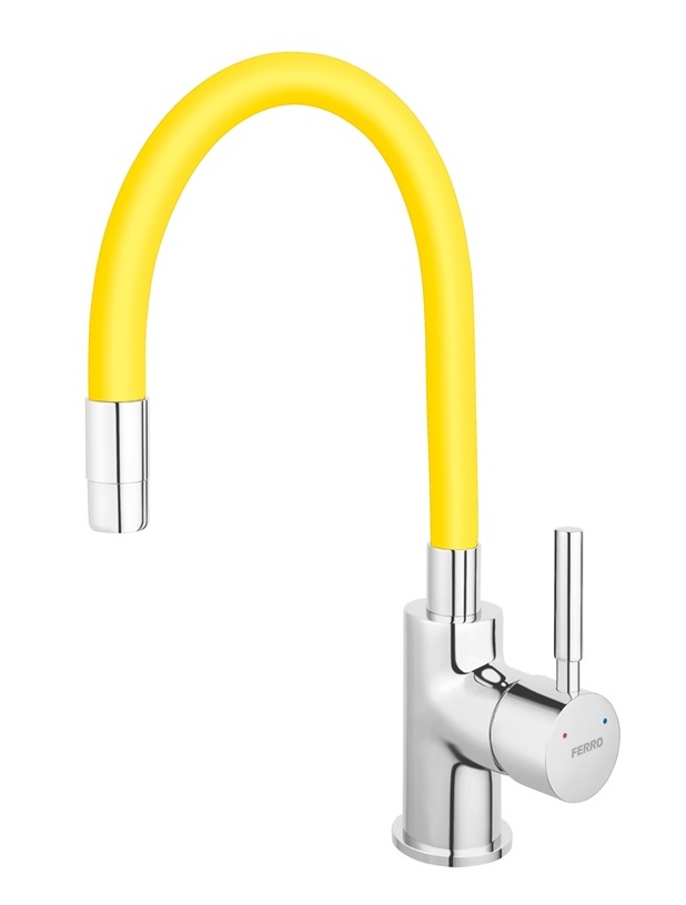Ferro Zumba Jednouchwytowa bateria zlewozmywakowa stojąca z elastyczną wylewką w kolorze cytrynowym