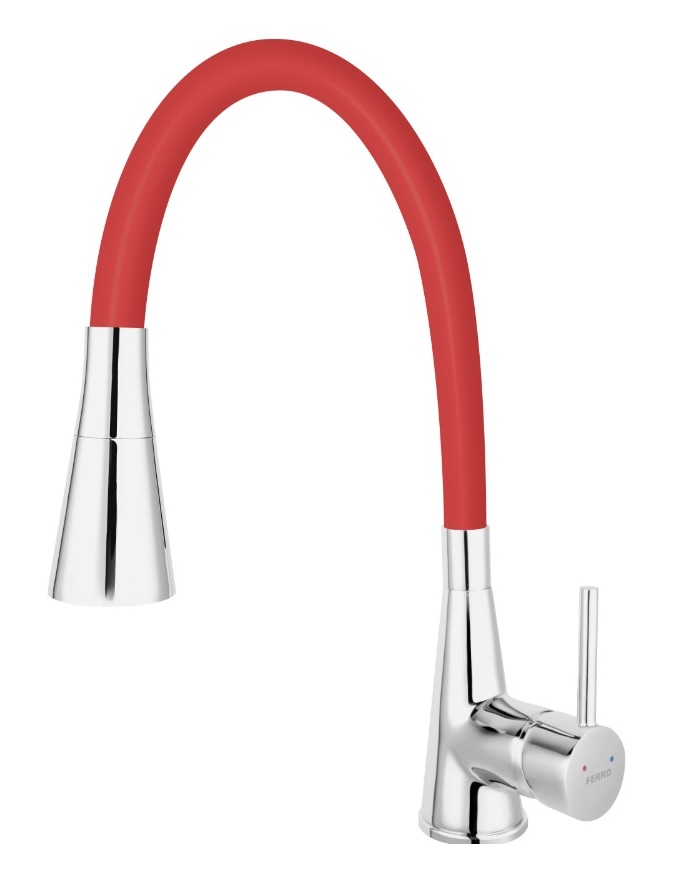 Ferro Zumba II bateria zlewozmywakowa stojąca z elastyczną wylewką, czerwona kod BZA42R