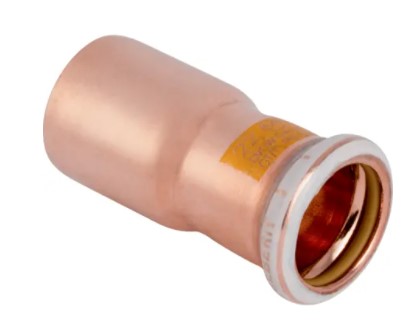 Redukcja Mapress Kupfer (gaz), 22 x15 mm, materiał: Miedź Cu-DHP CW024A (EN 1412), Mufa zaprasowywana z żółtą zaślepką ochronną