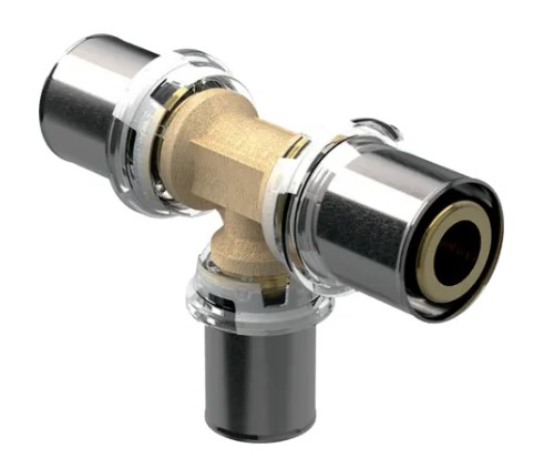 Trójnik redukcyjny Geberit Volex, materiał: Mosiądz CW617N, 26x20x26, Przezroczysty pierścień kształtki zaciskowej