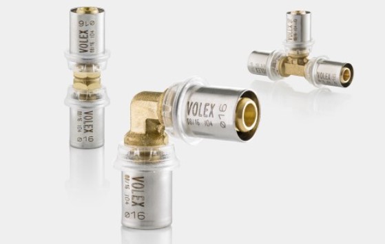 Złączka przejściowa z gwintem zewnętrznym Geberit Volex, 16x1/2", materiał: Mosiądz CW617N, Przezroczysty pierścień kształtki zaciskowej