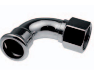 Kolano gwint wewnętrzny Press 90º, 22xRp1/2", Połączenie 1: Mufa zaciskowa, Połączenie 2: Gwint wewnętrzny gazowy stożkowy (BSPT)