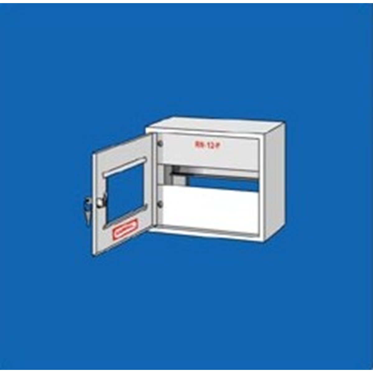 Rozdzielnica bezpiecznikowa natynkowa z zamkien i okienkiem RN-12-P, miejsce na 12 zabezpieczeń typu S z osłoną plombowaną, Szerokość: 255 mm, Wysokość: 215 mm, Głębokość: 115 mm