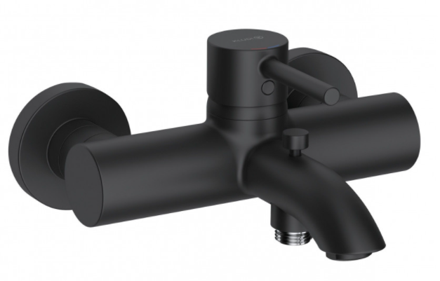 Jednouchwytowa bateria wannowo-natryskowa DN 15, uchwyt prosty, montaż naścienny, perlator M 24 x 1, kolor czarny mat