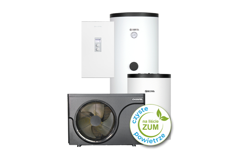 Kospel Pakiet HPM2.Z-8 z z pompą ciepła HPMO2-8, jednostką wewnętrzną HPMI2-8 oraz wymiennikiem c.w.u. SWP-300 i buforem c.o. SVK-100