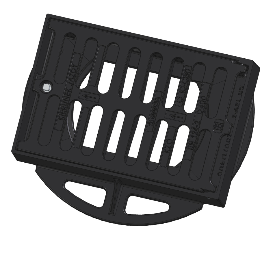 KZO Wpust żeliwny ściekowy D400 H115 3/4 kołnierza z rusztem uchylnym, niemalowany (surowy), KL.D400 (40T) Kod: W0200-4011-2000-000