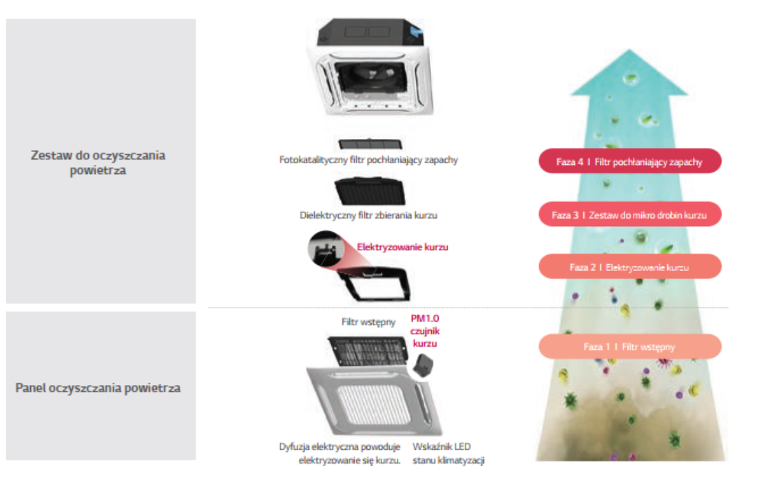 LGHigh-Inverter UT09FH Klimatyzator kasetonowy bez panelu maskującego, o mocy 2,5 / 3,2 kW, 4-stronny wylot powietrza, podwójne łopatki wentylatora Full 3D Turbo