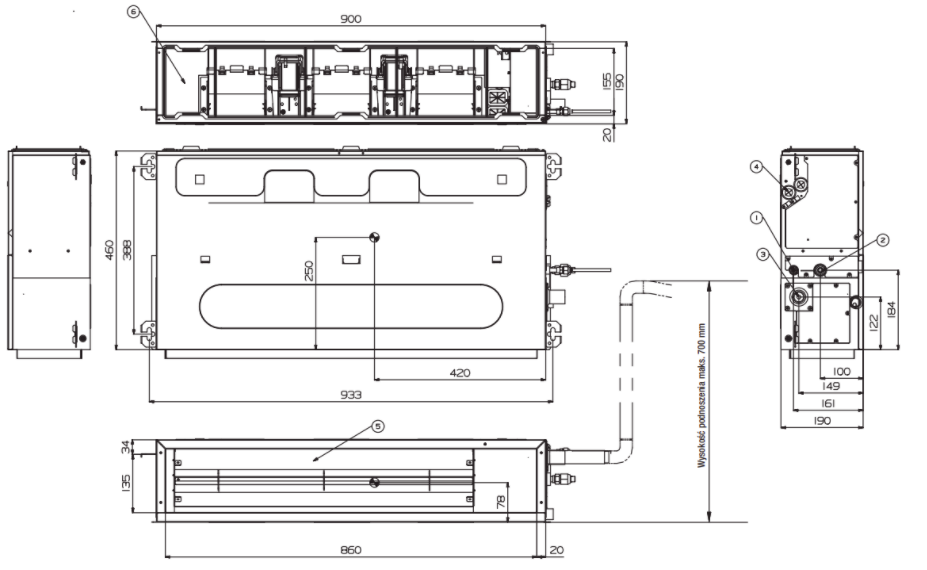 LG MULTI DUAL Inverter CL18F Klimatyzator kanałowy niskiego sprężu, 5,3 / 5,8 kW, (jednostka wewnętrzna) kod CL18F.N60