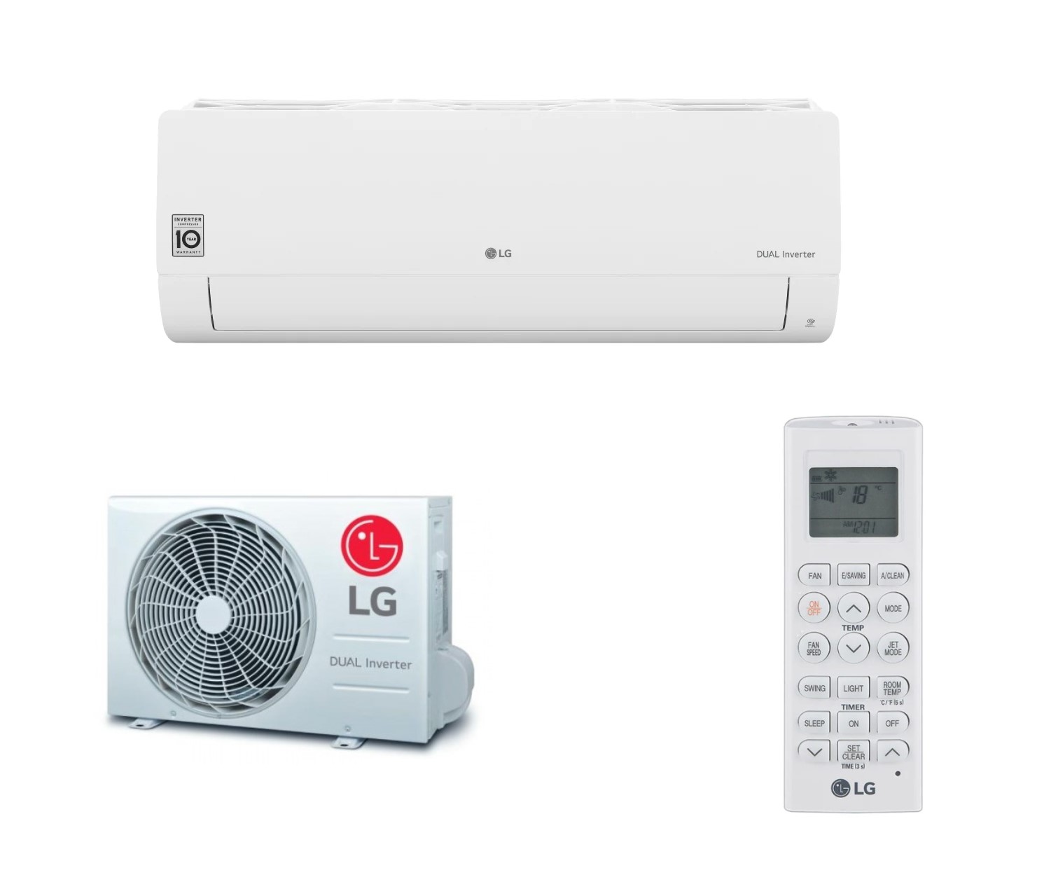LG Standard 2 S09ET Zestaw Klimatyzator chłodząco/grzewczy o mocy 2,5/3,3 kW, gaz R32 wraz z jednostką zewnętrzną, wbudowane Wi-Fi, aktywna kontrola zużycia energii, automatyczne oczyszczanie, 4-stronny nawiew, niski poziom hałasu 19dB.