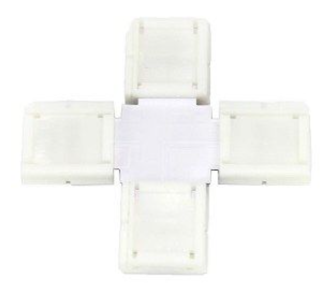 Szybkozłączka do taśm LED jednokolorowych 10mm, do tworzenia długich połączeń bez lutowania, poczwórna - krzyżowa, kolor biały.
